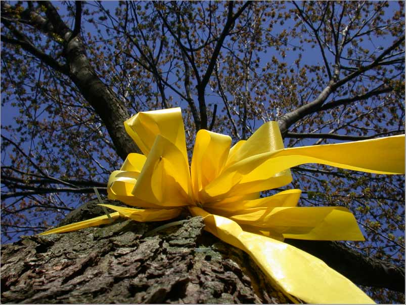Around her hair she wore a yellow ribbon