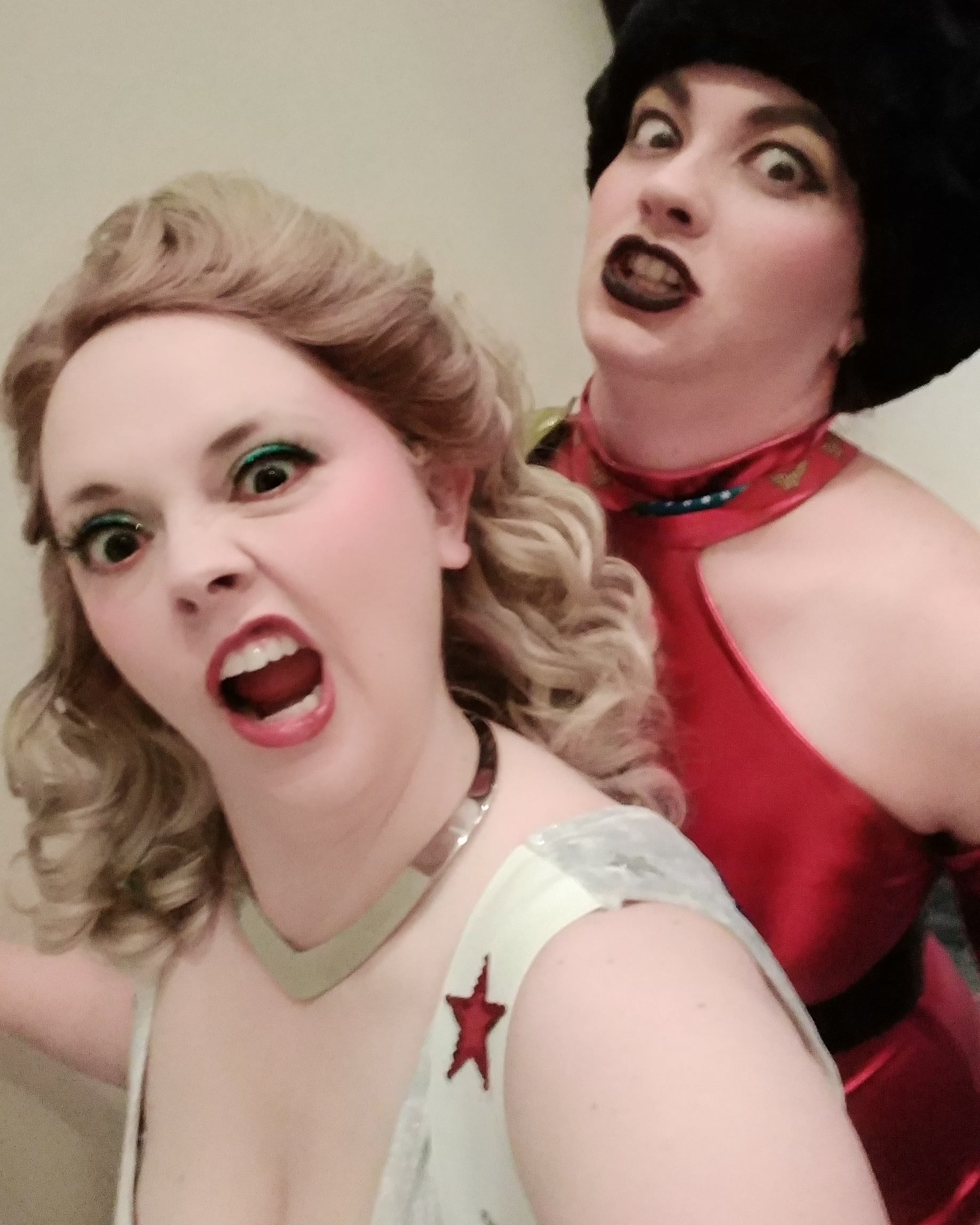 A fun little tidbit – after wearing this at DragonCon 2018 there was SO MUCH RED on it that had rubbed off from my friend’s Zoya costume! It’s like we were wrestling or something? Even though she prewashed her fabric. I was in a fucking panic because it was ALL OVER the leotard and vest. All was not lost, however! The red came out of the leotard fine with a wash, and the vest is now clean af thanks to a hit w/the magic eraser. It totally got all of the red off of the vinyl of the vest.