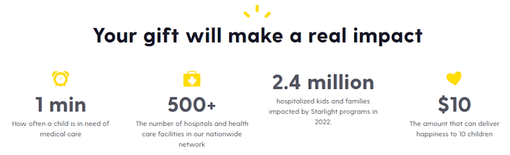 - $20.00 – Your donation can provide 20 hours of play on the Starlight Gaming Station for a child.